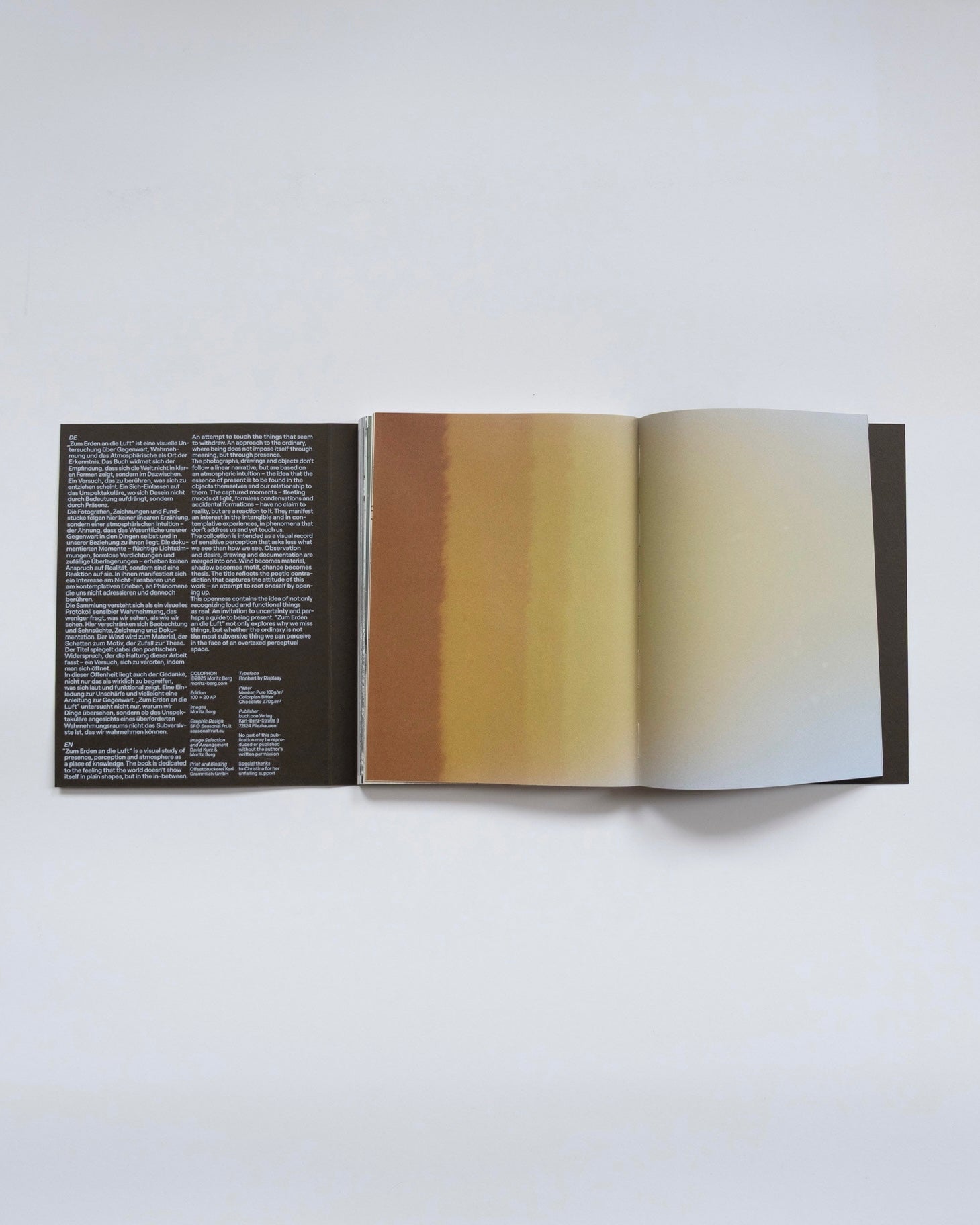 “Zum Erden an die Luft“ is a visual study of presence, perception and atmosphere as a place of knowledge. The book is dedicated to the feeling that the world doesn’t show itself in plain shapes, but in the in-between. An attempt to touch the things that seem to withdraw. An approach to the ordinary, where being does not impose itself through meaning, but through presence.